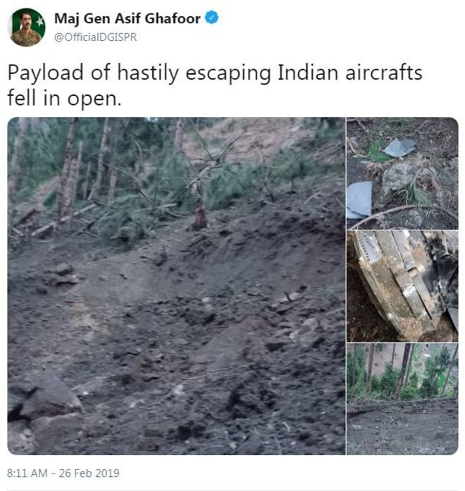 پاکستانی فوج کے شعبہ تعلقاتِ عامہ کے سربراہ میجر جنرل آصف غفور کی پہلی ٹویٹ میں مبینہ حملے کی جگہ ’بالاکوٹ کے قریب‘ بتائی تھی، جس کے بعد سوشل میڈیا پر یہ بحث بھی شروع ہوگئی کہ ڈی جی آئی ایس پی آر نے کون سے بالاکوٹ کا ذکر کیا تھا۔